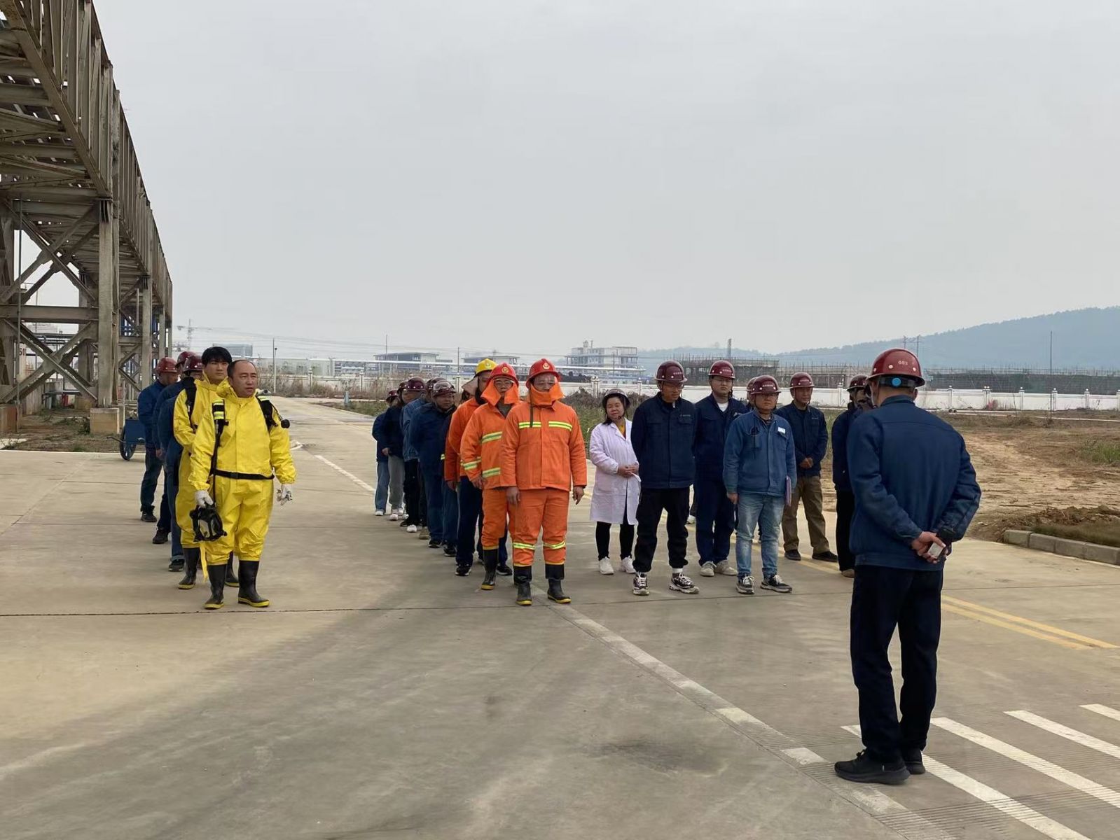 演練的內(nèi)容是模擬甲苯泄漏著火現(xiàn)場人員急救、、消防救火、撤離等。演練由事故應(yīng)急總指揮、應(yīng)急救援組、維修搶險(xiǎn)組、警戒疏散組、醫(yī)療救護(hù)組、環(huán)境監(jiān)測組、后勤保障組、新聞信息組組成。